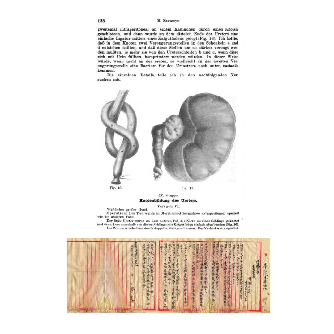 女性の骨盤内では、生殖器と泌尿器が解剖学的に近接しています。子宮癌などの大規模な手術を行う際、尿管を損傷すれば、尿が腹腔内に漏れ出し、命に関わる腹膜炎を引きおこしかねません。産科婦人科が「外科」から真に独立するためには、この泌尿器系の問題を、他科(外科)に委ねるのではなく、自ら取り組む必要がありました。専門性とは、まさにこの隣接領域との境界線上でこそ試されるのです。川添はドイツ留学中、当時最先端の分野であった「婦人泌泌尿器科(ウロギネコロジー)」を学び、この難題に取り組みます。彼は動物実験を重ね、尿管損傷時に腎臓を温存しつつ安全に尿管を閉鎖する、独自の手術法「川添式尿管閉塞法」を開発しました。
